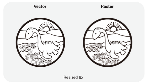 Raster images are comprised of tiny pixels that form a larger image when grouped together. When zooming in on a raster image, you'll notice that it becomes more blurry. On the other hand, vector art, typically built in Adobe Illustrator, scales infinitely and looks smooth and sharp even when you enlarge the image. The clarity provided by vector files makes it much easier to design an enamel pin, but most customers submit raster images, which are converted by our team to vector images.